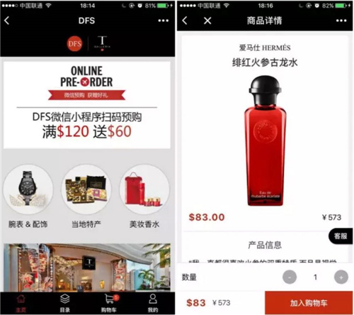 除了上文提到的“外交部 12308”小程序能為用戶在境外的人身安全服務(wù)之外,在旅游攻略查詢方面,有””窮游智能攻略”小程序;在消費購物方面,有“DFS 購物”小程序,幫助用戶在免稅店一鍵購物。