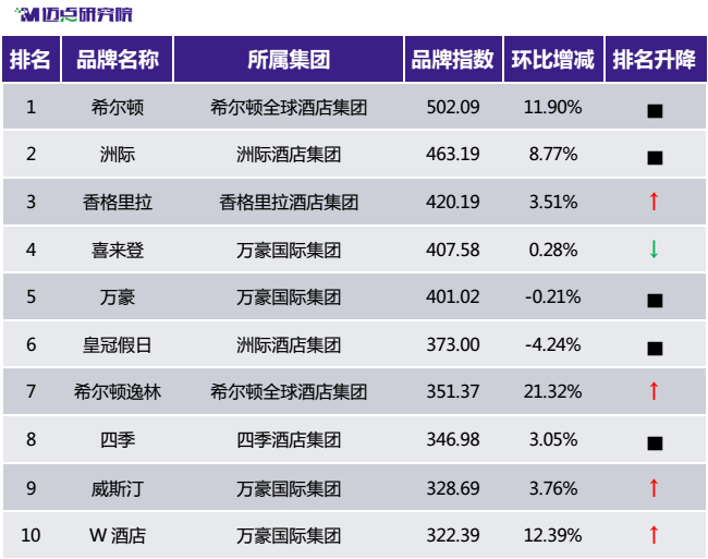1.國際高端酒店品牌環(huán)比升降TOP5