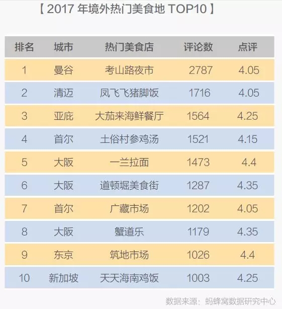 2017年中國出境旅游“大數據”
