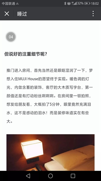“睡過”博主稱細致的描述了自己花2500元吸了一晚甲醛的經(jīng)過,最后得出評價MUJI HOTEL不及格;美食公會的絕命毒師,覺得選擇住MUJI HOTEL是自己腦子“瓦特”了。