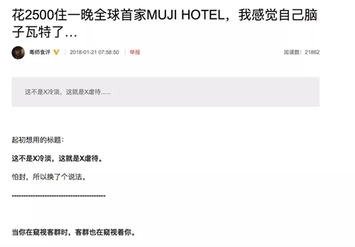 但讓人意想不到的是,就在開業(yè)后的第二天,MUJI HOTEL的口碑急轉(zhuǎn)直下。