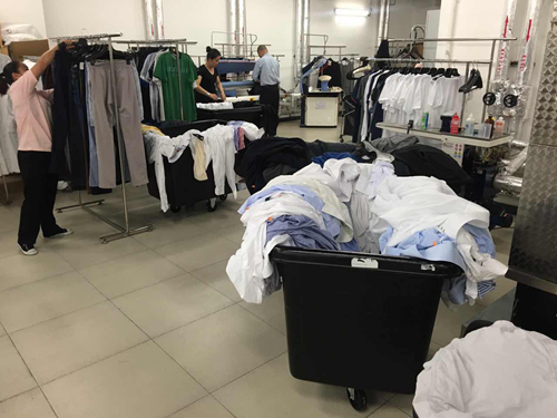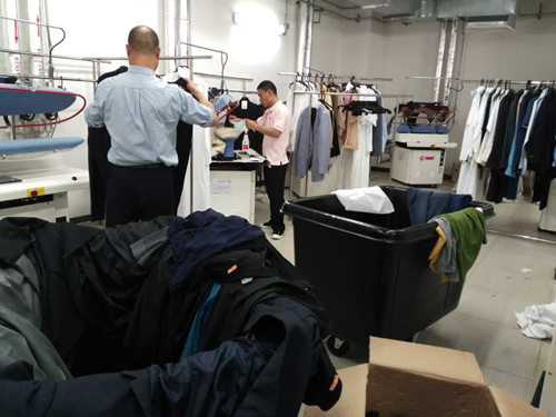 9月3日與9月4日,酒店的洗衣房迎來了自開業(yè)以來的巔峰時期,僅這兩天的收益就到達了平時1個月的水平。據(jù)悉,沙特代表團在酒店期間,曾經(jīng)一間房有76件衣物需要清洗熨燙,堆放了整整一車。700多名代表共2000多件衣物被送至洗衣房。7個人24小時通宵工作,2臺機器16小時不間斷運轉(zhuǎn),房務(wù)部、前廳部、人力資源部的同事都參與進洗衣這項任務(wù)。相關(guān)負責人對記者表示,“夜間本來應(yīng)該安靜的洗衣房,在G20 期間真的是熱鬧非凡。洗衣房工作的流水線變得浩浩蕩蕩,從收客衣—清點—打標簽—清洗—熨燙—折疊—衣物歸檔—送進房間,好不壯觀!”