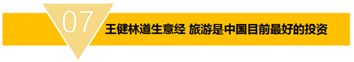 9月8日,萬達集團董事長王健林在2016廈門國際投資洽談會上發(fā)表演講,稱旅游是最好的投資之一,并給出了五個理由。第一,旅游投資是國家的產(chǎn)業(yè)方向,第二,旅游是最長壽的投資,第三,旅游是最環(huán)保的投資,第四,旅游是能發(fā)財?shù)耐顿Y,第五,旅游是最富民的投資。