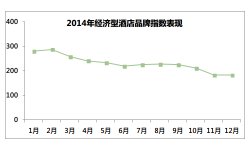 同質(zhì)化競爭的現(xiàn)象,首先在經(jīng)濟(jì)型酒店市場品牌影響力中反應(yīng)出來。從圖上表單可看出,經(jīng)濟(jì)型酒店品牌在2014年,品牌指數(shù)呈現(xiàn)總體下降的趨勢。這當(dāng)中除了部分優(yōu)秀、發(fā)展成熟的品牌外,多為后進(jìn)入市場的后來者。