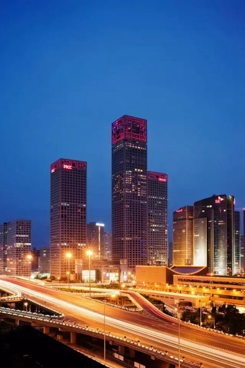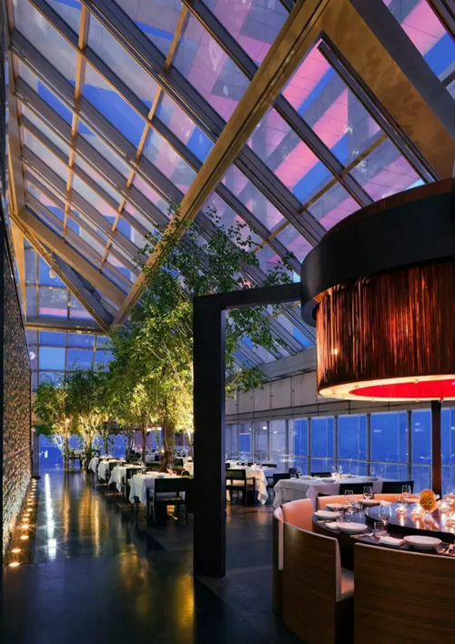 北京銀泰中心為北京柏悅酒店創(chuàng)造了 63 層大堂吧及前臺、65 層亮餐廳和亮酒吧 360 度視角看北京的可能,大褲衩隨便拍,中軸線就在眼底,尤其入夜后,主樓頂部“中國燈籠”造型燈光璀璨,如燈塔般光芒四射。