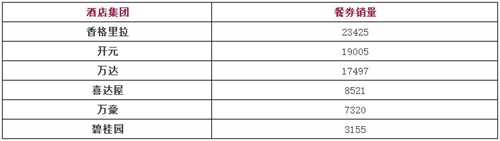 香格里拉的餐券賣到2萬多張!開元和萬達(dá)的也超過1萬張!遠(yuǎn)遠(yuǎn)超過通用房券數(shù)量,吃貨國果然對美食情有獨(dú)鐘。