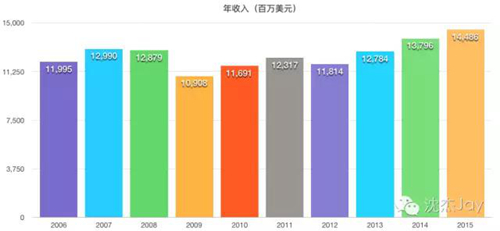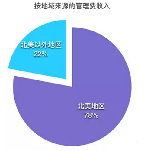 從地域分布來看,2015年來自北美地區(qū)的收入占了總收入的78%。