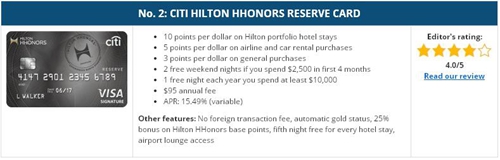 希爾頓榮譽客會花旗信用卡排名第二