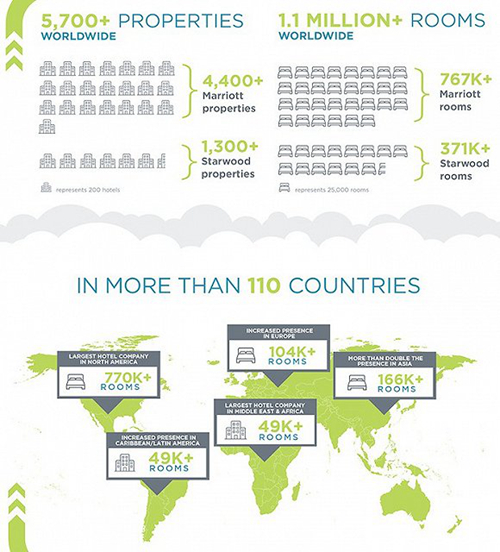 合并喜達屋后,萬豪在全球110多個國家和地區(qū)共管理或加盟超過5700家酒店。 圖表來源:conventionresortnetwork.com