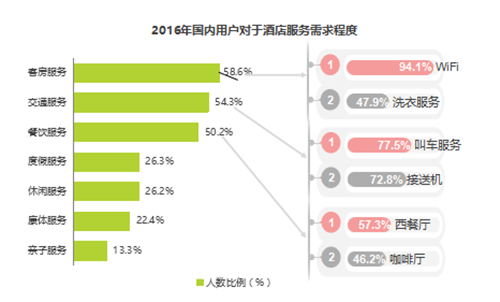 用戶在選擇服務的時候,多樣化個性化的服務相比以前更關注,除了客房餐飲交通三大層面,客房WIFI同樣不容忽視,有句話叫有床有沙發(fā)有WIFI,說明WIFI成為了必不可少的一部分。交通部分主要體現(xiàn)的叫車服務跟接送機服務,餐飲層面西餐廳越來越受重視,說明人們對小資生活的追求度比較高,未來酒店建設這些要素都要引起重視。