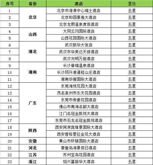 2016年共有23家五星13家四星酒店被摘星!