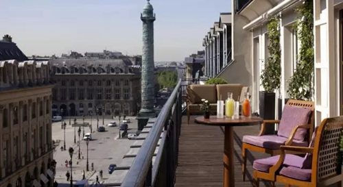 在寸土寸金的巴黎,雖然客房的陽臺很窄,但風景卻是一望便知的巴黎城市景色。標志的旺多姆廣場,卡尼爾歌劇院盡收眼底。