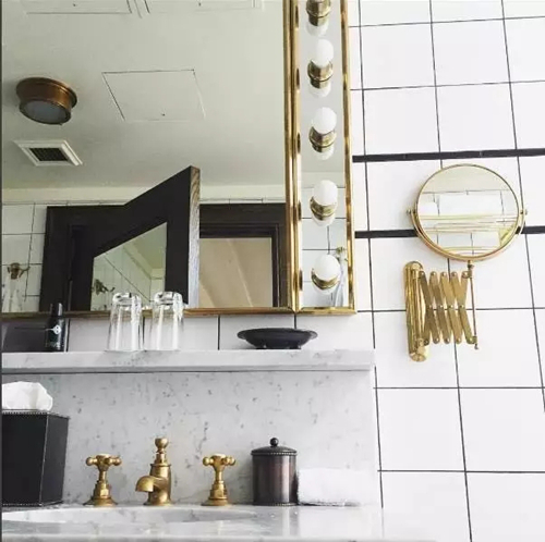 漆金管道,大理石浴缸,馬賽克墻磚營造出的復古美感,引發(fā)了大規(guī)模的網友們來這里入住,開始在浴室自拍。