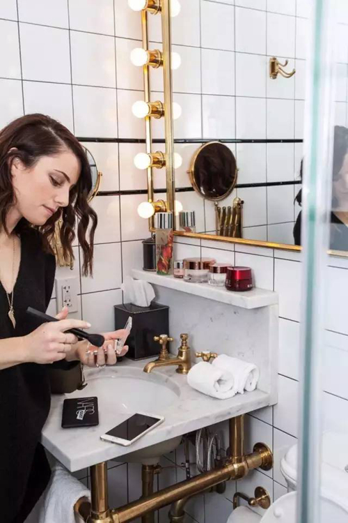 浴室中的化妝鏡是可伸縮的,還擁有好萊塢后臺感的背光燈,看來設計師良苦用心,為的就是讓網友們在這里自拍各種美照。