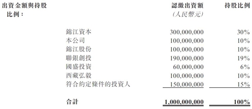 據(jù)此協(xié)議,各方合計出資10億元人民幣,其中,錦江資本出資3億元持有WeHotel30%股權(quán),錦江酒店與錦江股份分別出資1億元,均持有10%的股權(quán)。
