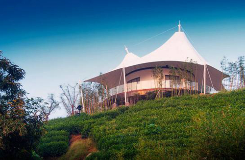 以白茶養(yǎng)生為主題的安吉帳篷客?溪龍茶谷度假酒店,藏身于萬畝白茶園中,得天地之靈氣,水土之滋養(yǎng)。游客在清雅的茶谷中,或漫步、或采茶、抑或聞香拾趣,體驗(yàn)返璞自然的生活方式。酒店設(shè)計(jì)整體風(fēng)格以素雅為基調(diào),并與當(dāng)?shù)匚幕碍h(huán)境契合,從建筑外裝飾材料到內(nèi)部裝飾,均采用當(dāng)?shù)氐哪?、石、竹、瓦,且保留了原有建筑部分的古建形態(tài),使其不失原味。