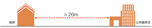 野奢度假酒店客房與公共服務(wù)區(qū)的間距