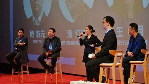 開元集團(tuán)曼居CEO殷乾元、桔子水晶酒店集團(tuán)華東區(qū)副總經(jīng)理湯紅偉、杭州西軟信息技術(shù)有限公司北京分公司運(yùn)營副總經(jīng)理王小月、憶泊創(chuàng)始人周洋、栢高酒店集團(tuán)總裁王松志中端辯論:資本PK情懷。