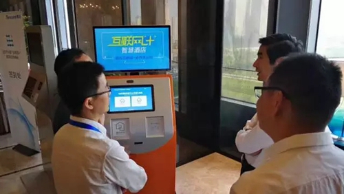 今年6月初,“互聯(lián)網(wǎng)+智慧酒店”自助服務(wù)機亮相在杭州北辰國際酒店的大堂,這臺機器讓客人在半分鐘內(nèi)就可以完成入住手續(xù)。通過它,客人可以自主在設(shè)備上完成身份登記、核實、訂單處理、付款以及獲得房卡等流程,并可以完成自助退房,然后獲得電子發(fā)票等手續(xù)。
