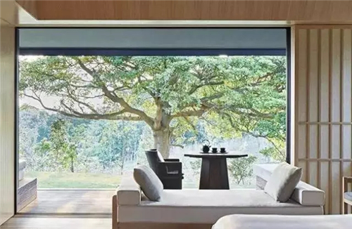 整體的設(shè)計有落落大方的大家風(fēng)范。白色橡木咖啡桌,桌椅沙發(fā)與大地色織物的色調(diào)相得益彰。24間套房和4棟雙臥別墅傳承日本溫泉度假勝地的傳統(tǒng),每一間都配備私湯。浴室的設(shè)計更加傳統(tǒng)而簡潔,炭黑色的地磚“升起”方形的浴缸,大幅落地玻璃將窗外的四季花園美景嵌入私人溫泉中。