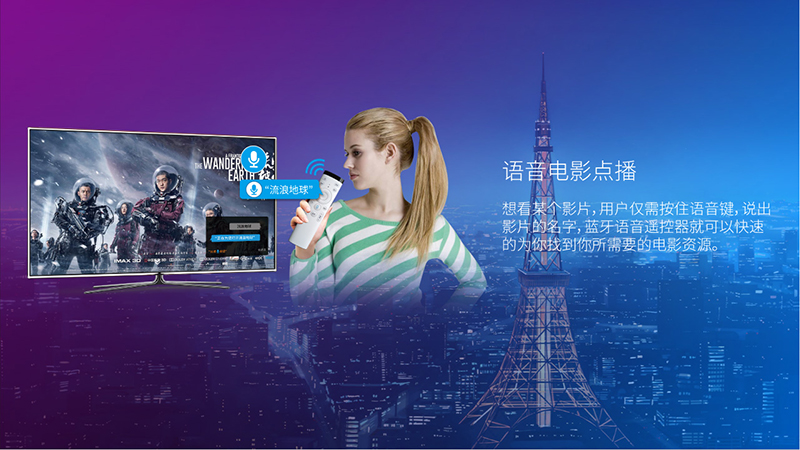 想看某個影片,用戶僅需按住語音鍵,說出影片的名字,藍牙語音遙控器就可以快速的為你找到你所需要的電影資源。只要電視里有的資源,它都可以即時的幫你播放,更加實用的一點是,語音遙控是貫穿全程的??措娨暱吹讲幌矚g的女二又賴在男主旁邊,就想趕緊快進:“快進幾分鐘”,馬上就可以跳過不需要的劇情,跟手動長按進度條快進相比,不知方便多少。聲音太輕要調(diào)大音量,或是暫停、退出,也全可通過語音遙控實現(xiàn)。輕松玩轉(zhuǎn)語音遙控后,看電視用遙控就變得非常輕松了。